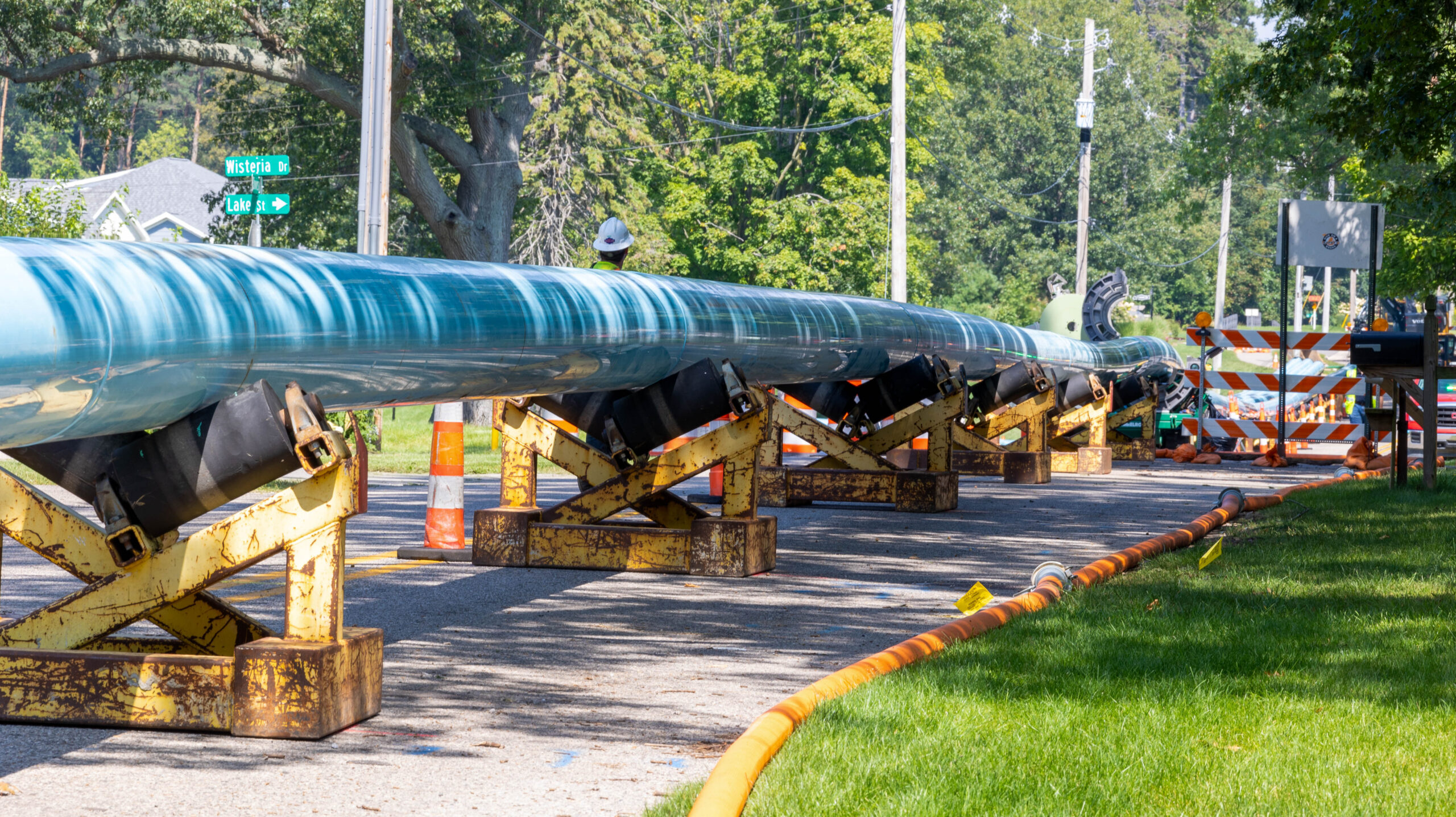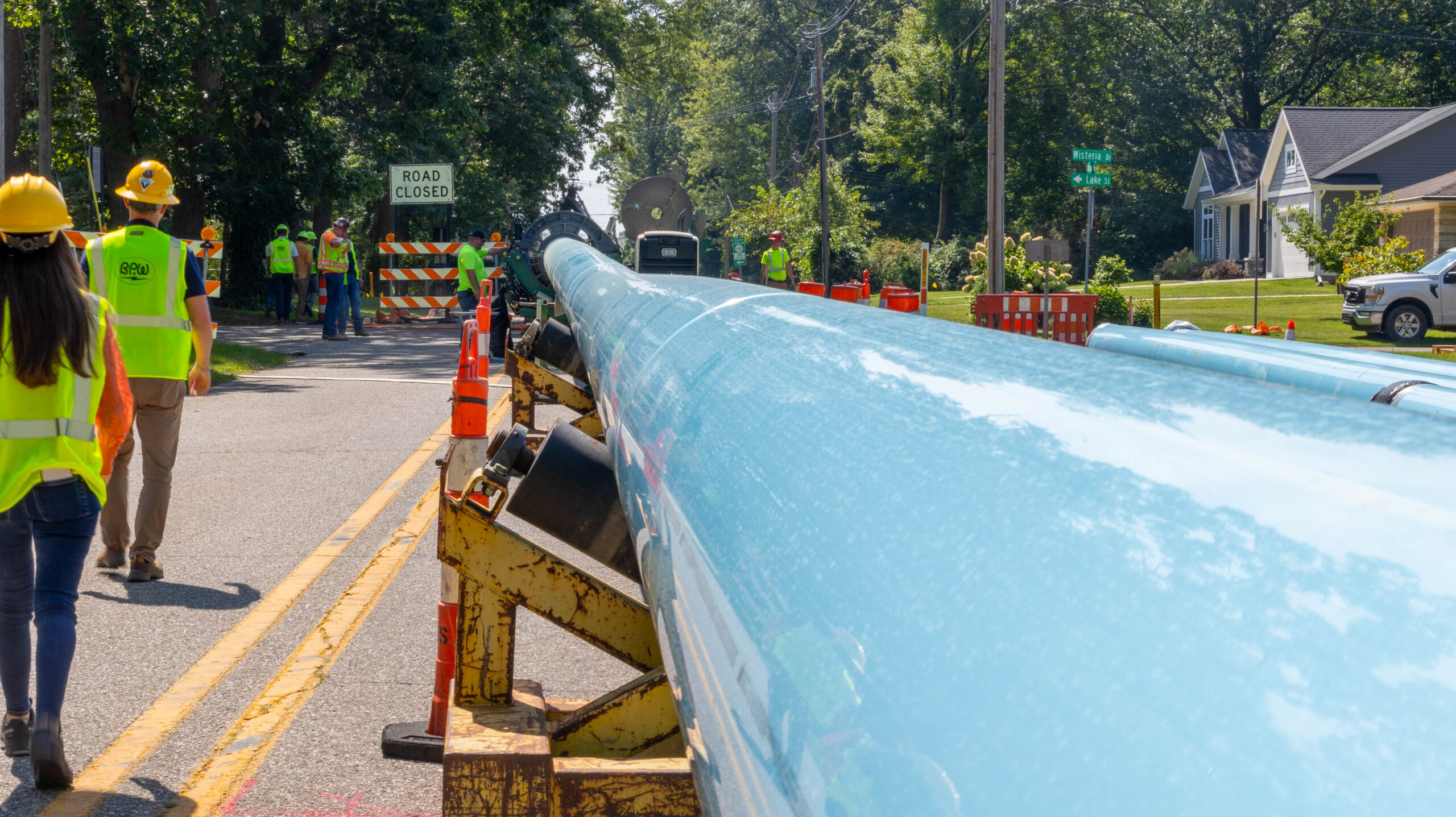 Holland BPW pulled a pipe that is ¾ mile long through the water transmission main that runs beneath Lake Macatawa, delivering fresh water to the service area. It took two full days to get the pipe all the way across the lake. Afterwards, the entire length was grouted with a special material to hold the new pipe in place.